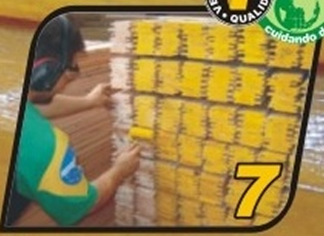 Depois de fitados, os lambris são armazenados em locais livres da intempérie e umidade, e pintados de amarelo nas ponta, identificando assim um produto legitimo VS Madeiras, Garantindo a sua qualidade.